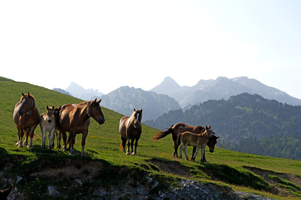 Il confine si raggiunge a Larra-Belagua, dove ci accolgono numerosi cavalli liberi; poi la strada torna in territorio spagnolo e scolliniamo in Francia al Col de la Pierre St.Martin.